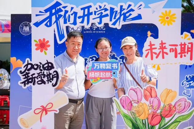 “‘理’聚星光,‘新’火相传”。蓝标如海,指引每一颗星辰抵达理学的银河快门闪动,手牌定格,把最亮的笑写进初秋的晴空家长会场,家校同频,把成长写成共振的方程。你们以探索为笔,在公式与定理的坐标系里描摹宇宙的轮廓,你们以严谨为墨于微分与积分之间雕刻未来的棱角。欢迎新同学愿你们在理与数的天地把未知解成惊喜,把梦想证成定理让青春的光,成为理院下一束燎原的星火。