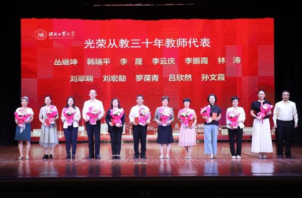 9月10日,河北多多282025年教师节表彰大会在北辰校区大学生活动中心世纪礼堂举行。校领导、中层干部、教职工代表、退休教师代表、从教30年教师代表、新入职教师代表以及获奖教师代表齐聚一堂,共同庆祝第41个教师节,激励广大教师坚守立德树人初心,担当教书育人使命,为建设教育强国贡献力量。