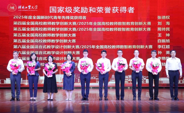 在“兴工报国?灯塔领航”篇章,表彰聚焦省级以上荣誉和奖励。校领导李子彪、马国伟、贺立军分别为“第五届河北省高校教师教学创新大赛”、省级荣誉获奖教师代表、国家级教学竞赛获奖教师代表颁发鲜花,祝贺他们在人才培养、科学研究、社会服务等方面取得优异成绩。