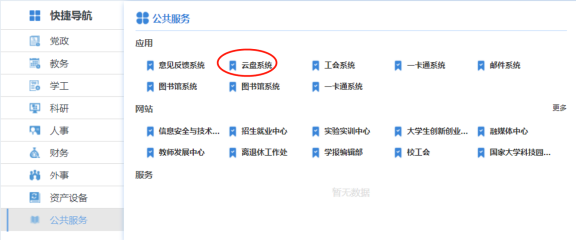 云存储:依托学校私有云资源建设安全可靠的私有文件存储空间,为每位教师提供20G云盘,支持个人和单位文档统一存放和共享使用。