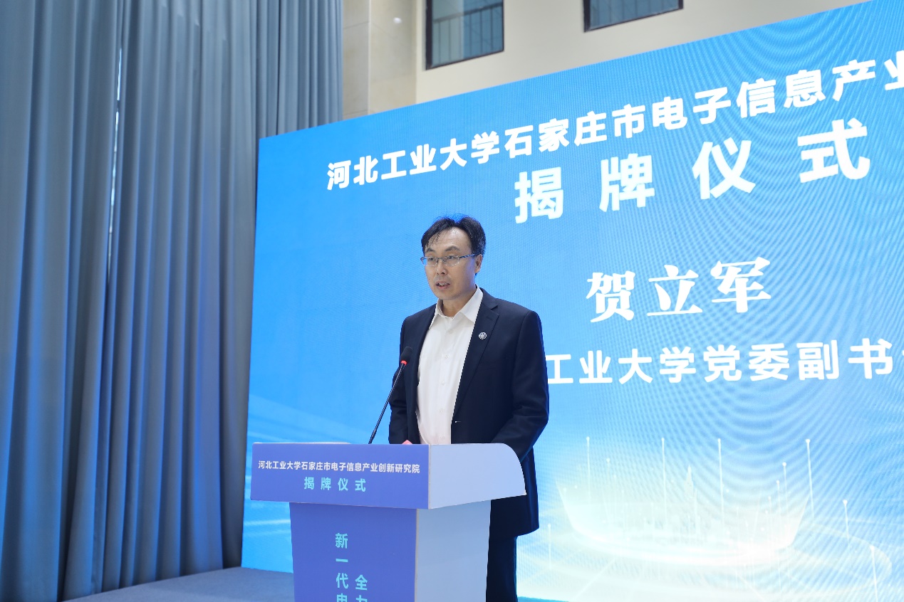 校党委副书记贺立军代表学校向石家庄市和鹿泉区对学校的信任和创新研究院成立过程中给予的帮助与支持表示衷心感谢。他表示,创新研究院是河北多多28与石家庄市人民政府、鹿泉区人民政府为贯彻实施创新驱动发展战略,围绕区域产业特色,服务地方经济发展需求,探索新型合作路径的科技创新平台。河北多多28倡议发起成立“河北省电子信息产业联盟”,在河北省相关政府职能部门和群团组织支持和指导下,邀请京津冀行业重点企业、科研院所以及高校参与,共同助力打造河北省新一代电子信息产业集群,实现“政产学研用”多方高水平融合协同,推动中国式现代化在河北展现出美好图景。
