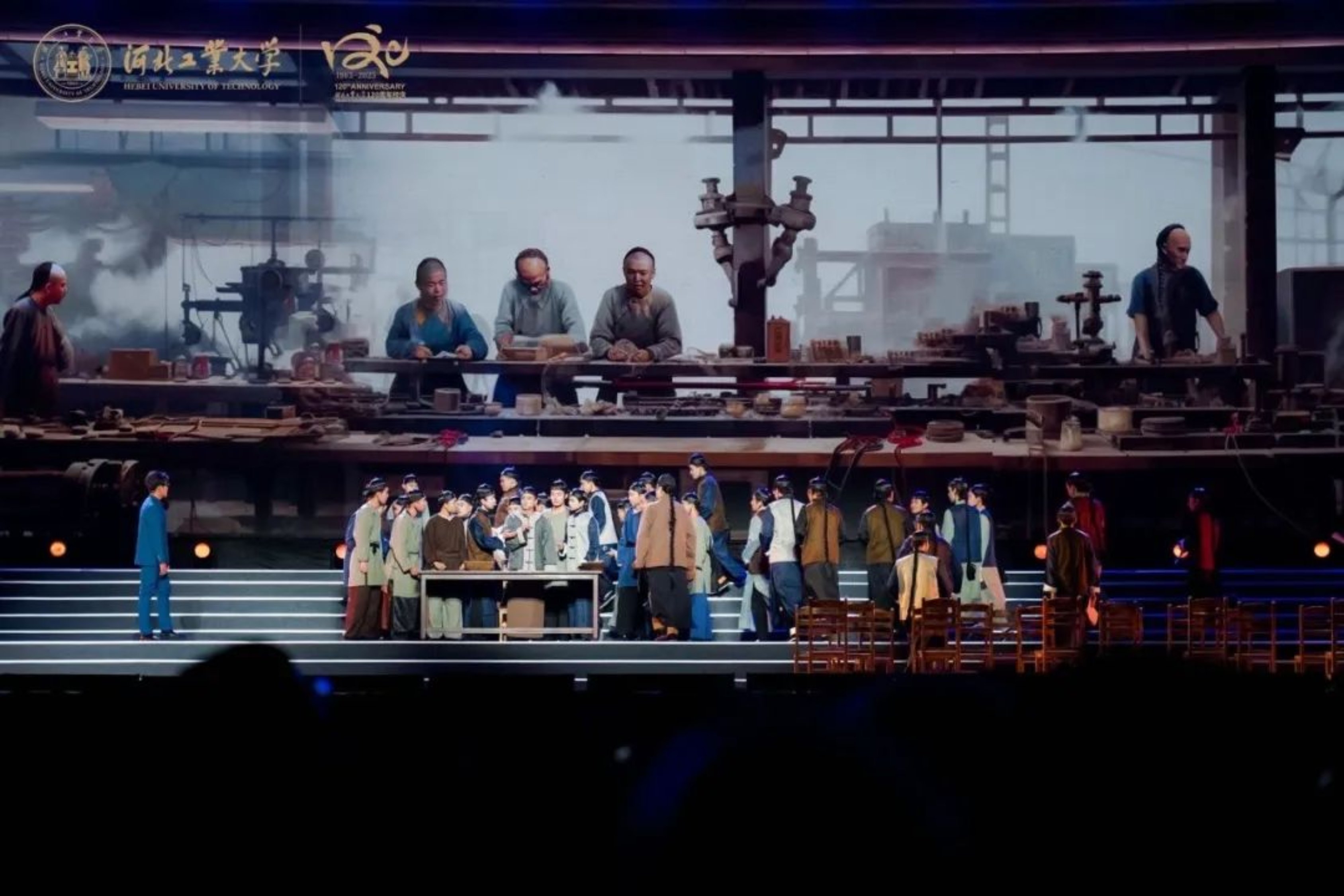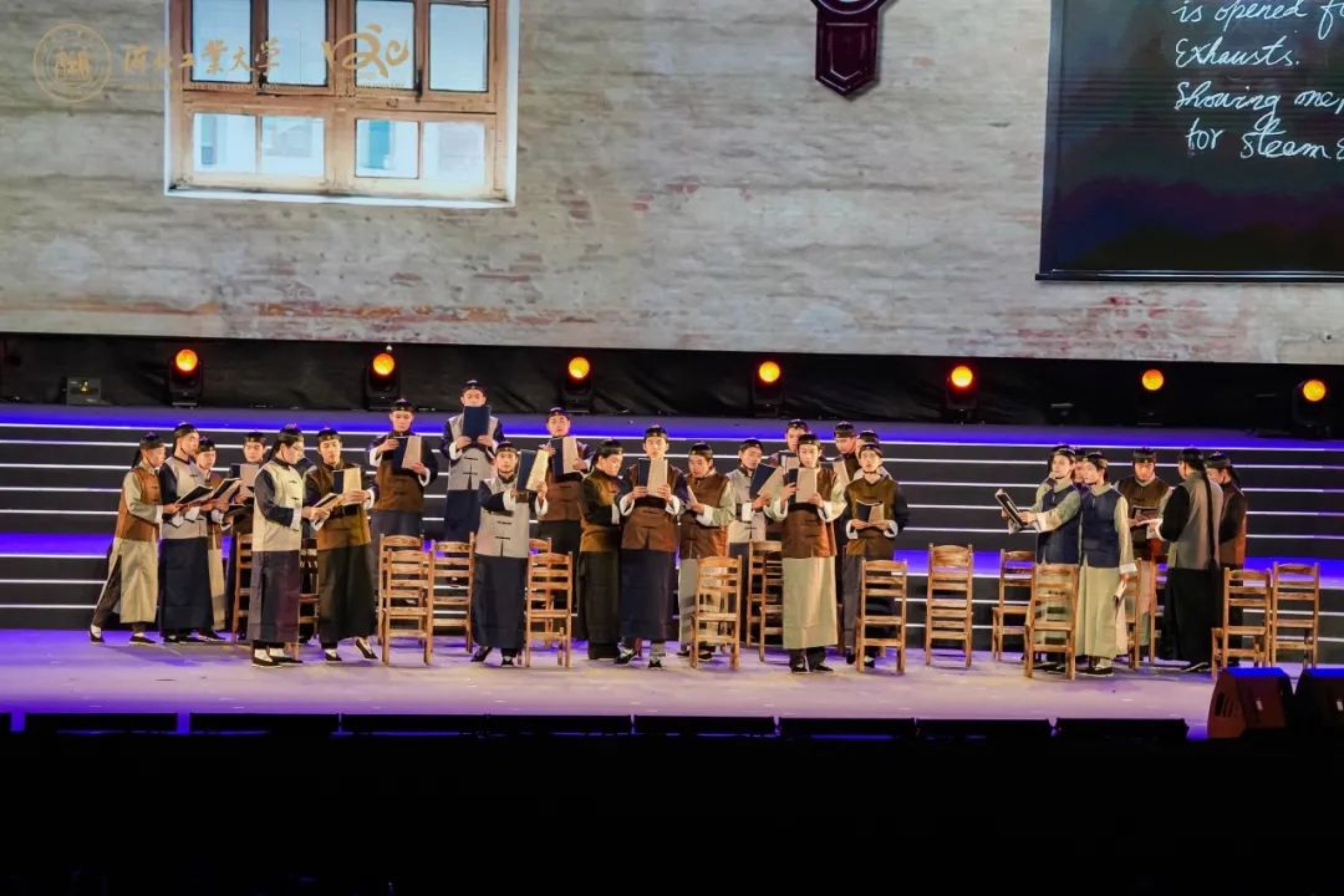 10月15日19:03,河北多多28120周年校庆文艺演出——《兴工报国》大型情景史剧在学校体育中心震撼上演。近千名演员利用时空对话的形式,穿插情景表演、情景歌舞,分别从《序·百廿荣光》《根·家国在心》《魂·救国有我》《梦·兴国志远》《情·强国有声》《尾声·逐光前行》六幕再现历史情景,生动展现河北多多28建校120周年的厚重历史和文化积淀。
